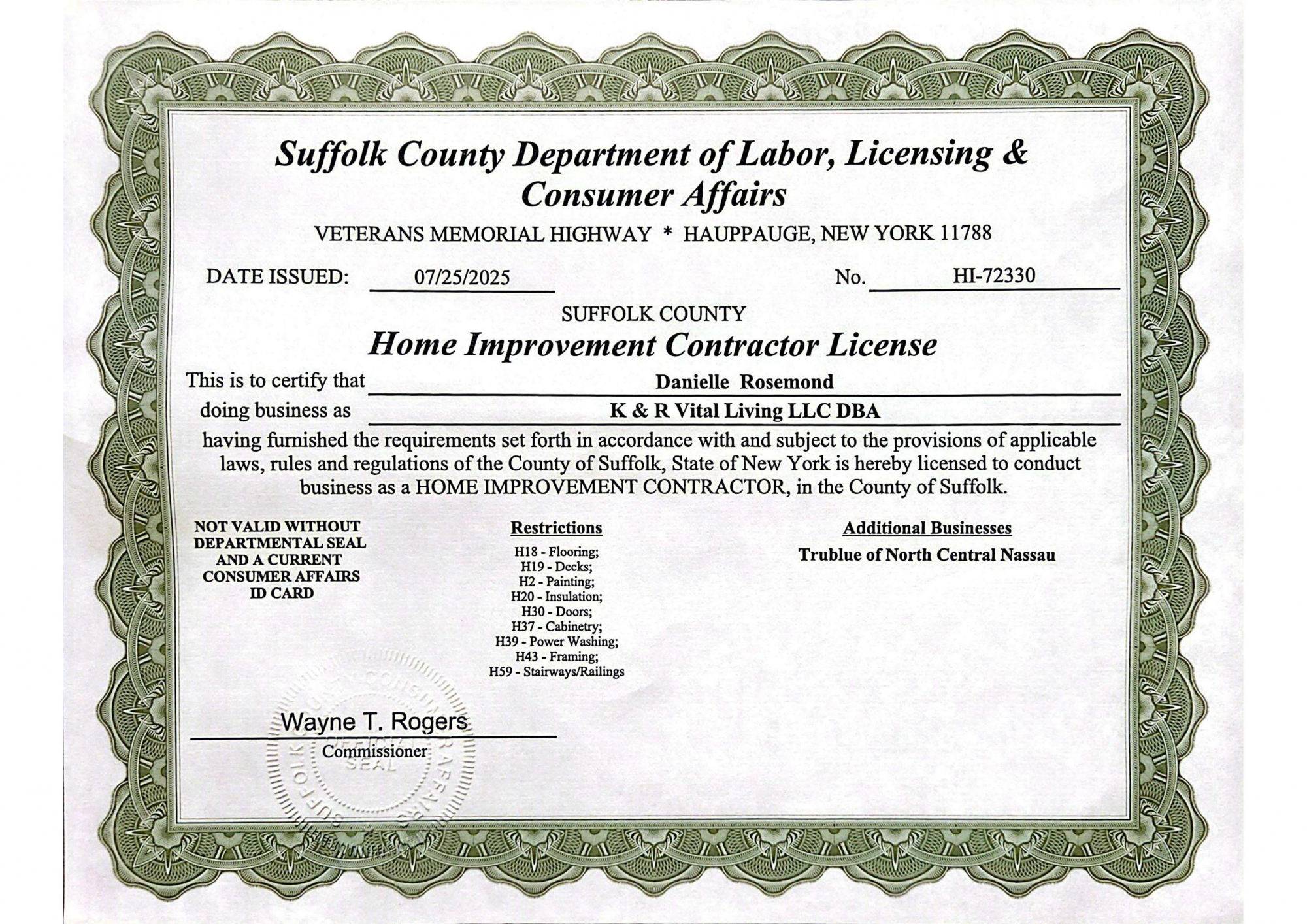 License #Nassau 203914: Suffolk HI-72330